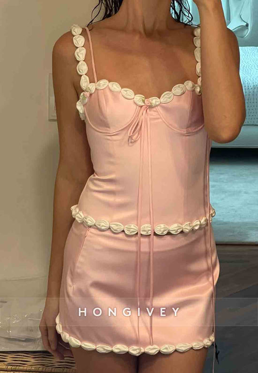 Chic Sheath Spaghetti Straps Shoulder Flower Satin Short Homecoming Dress