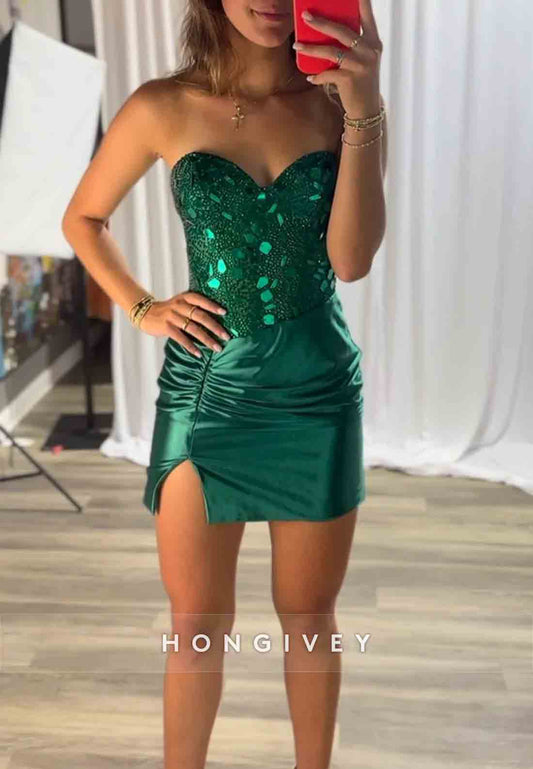 Sparkly Sheath Sweetheart Hot Strapless Short Homecoming Dress with Beading