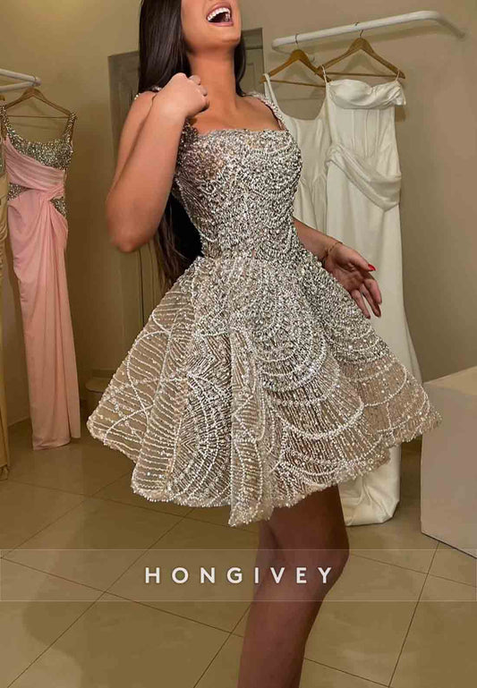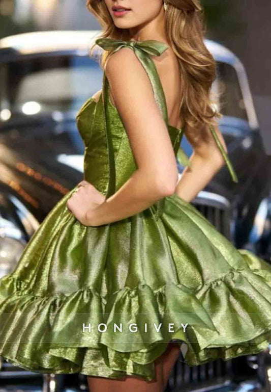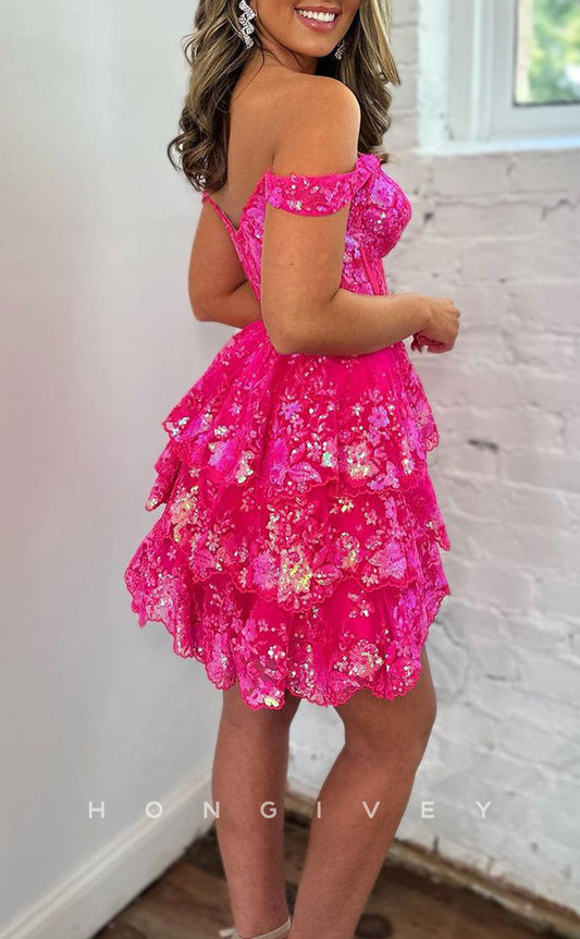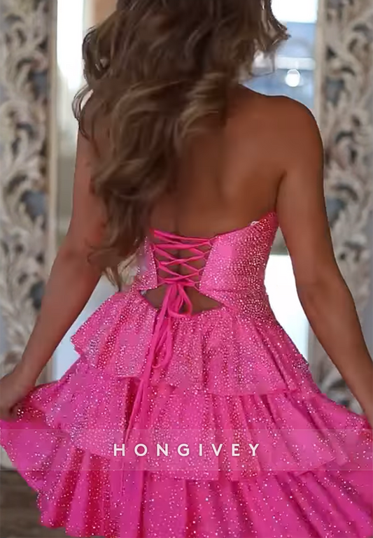H2114 - Sexy Glitter A-Line Sweetheart Straps Tiered Ball Gown Short Party/Homecoming Dress
