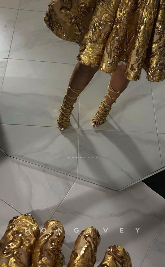 H1618 - Sparkly Sheer Fully Sequined Lace Applique Homecoming Party Dress
