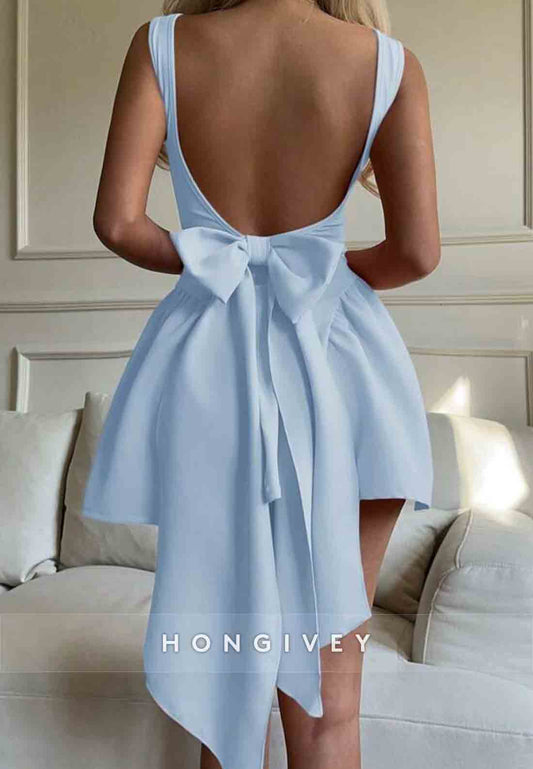 Bowknot A-Line Sleeveless Backless Pleated Cap Straps Mini Homecoming Dresses