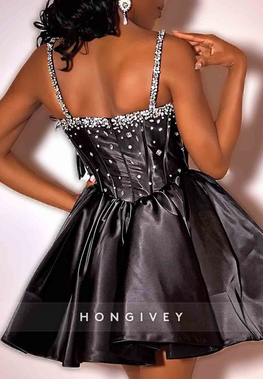 Sleeveless Satin Bowknot V-Neck Princess Beading Short Homecoming Dresses