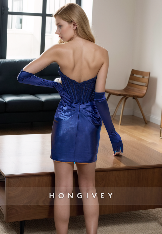 Satin A-Line Sweetheart Strapless Beaded Short Homecoming Dress