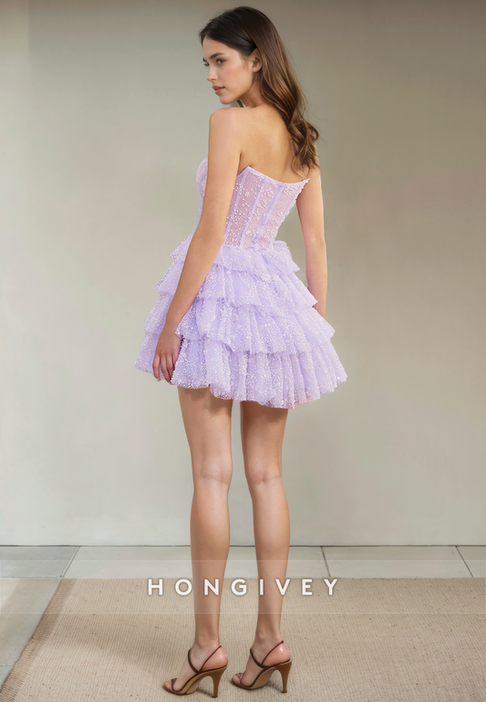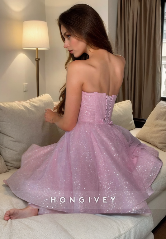 Tulle A-Line Sweetheart Strapless Glitter Short Homecoming Dress