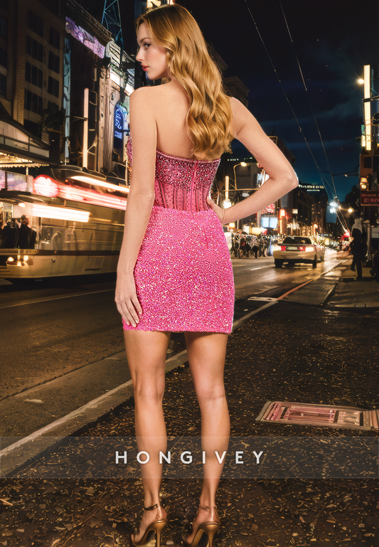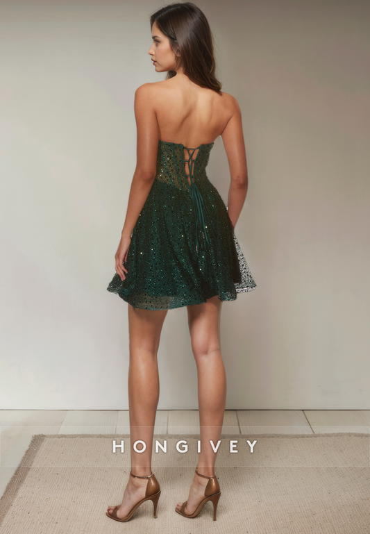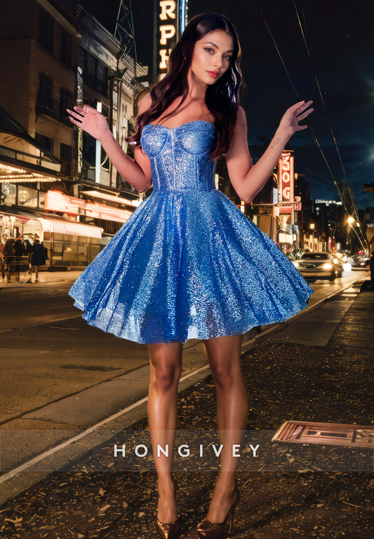 A-Line Sweetheart Strapless Sheer Sequined Short Party Homecoming Dress
