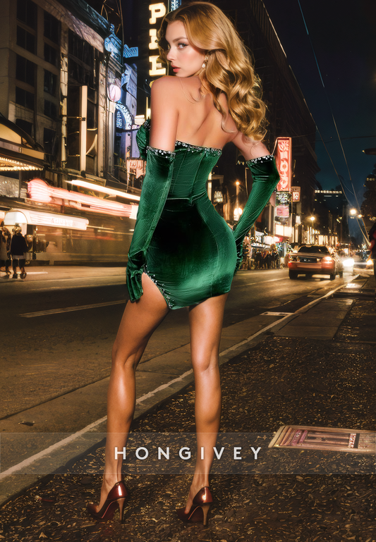 Fitted Sleeveless Strapless Beaded Velvet Short Party/Homecoming Dress