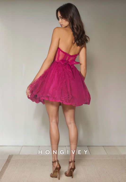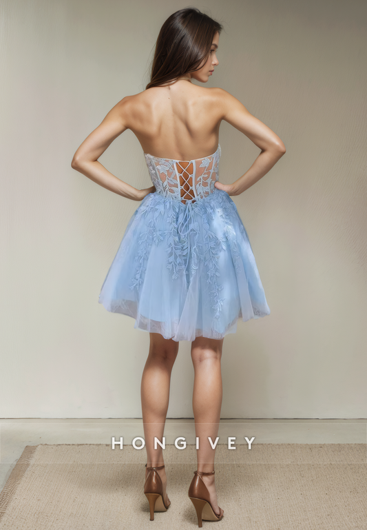 Sheer Tulle A-Line Sweetheart Strapless Short Homecoming Dress