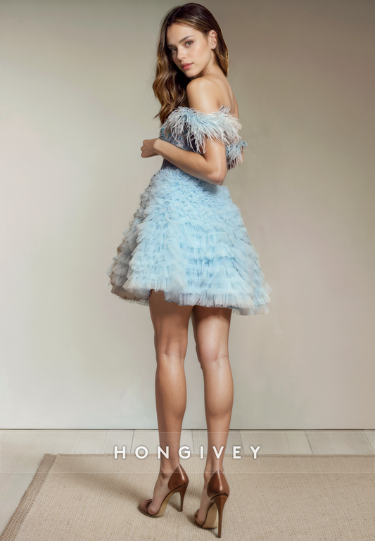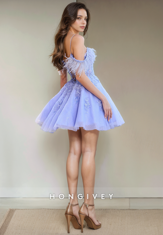 Tulle A-Line Feathers Appliques Short Party Homecoming Dress