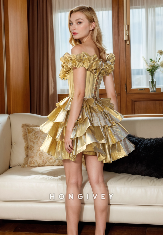 A-Line Off-Shoulder Tiered Empire Party Prom Evening Homecoming Dress
