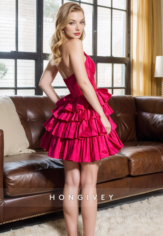One Shoulder A-Line Lace Sheer Tiered Party Evening Homecoming Dress