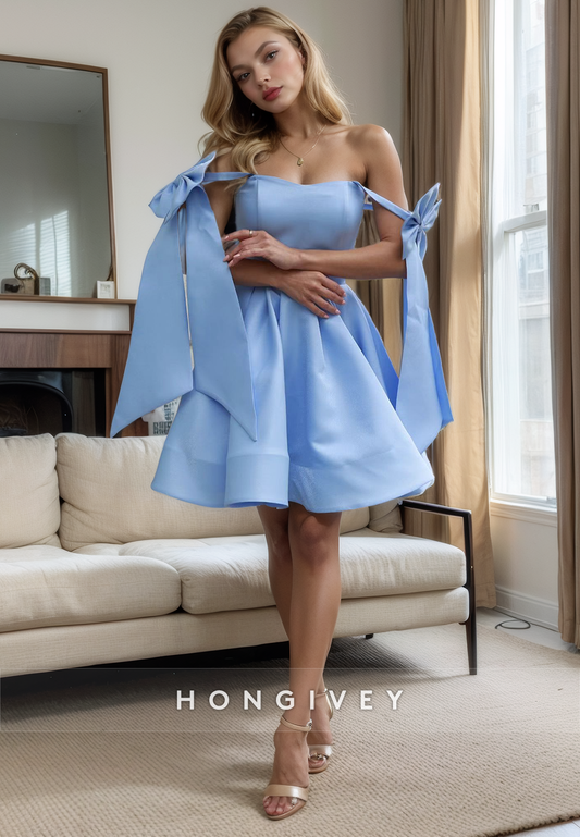 A-Line Strapless Sleeveless Empire Bowknot Short Party Homecoming Dress