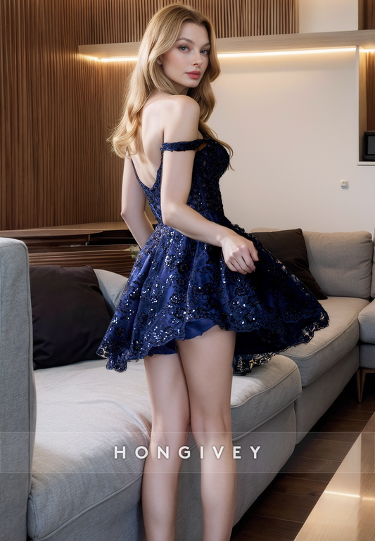 Off-Shoulder A-Line Illusion Lace Applique Party Evening Homecoming Dress
