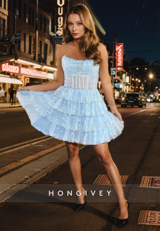 Tulle A-Line Strapless Sheer Empire Party Evening Homecoming Dress