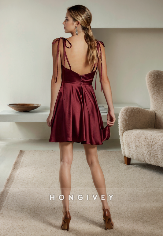 Sweet Satin A-Line V-Neck Spaghetti Straps Short Party Homecoming Dress