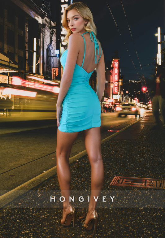 Casual Satin V-Neck Halter Open Back Short Party Homecoming Dress