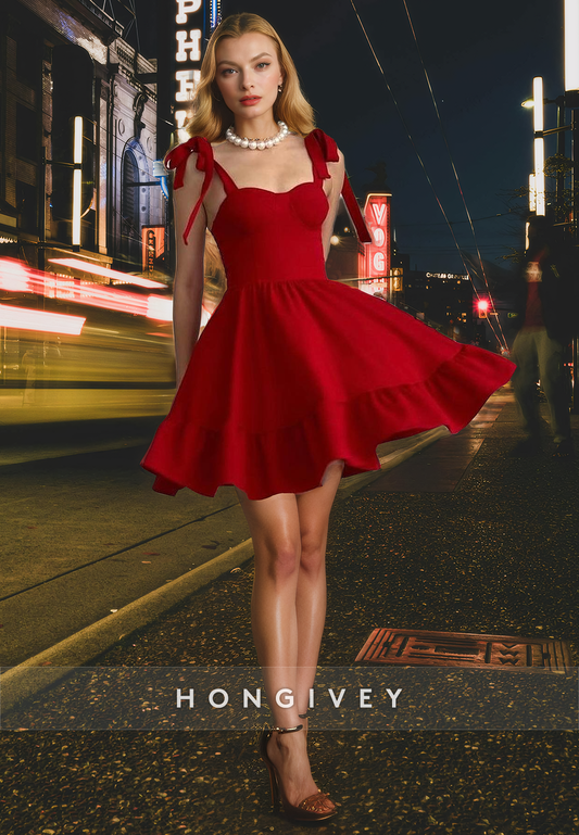 Sexy Fitted V-Neck Halter Bowknot Short Homecoming Dress