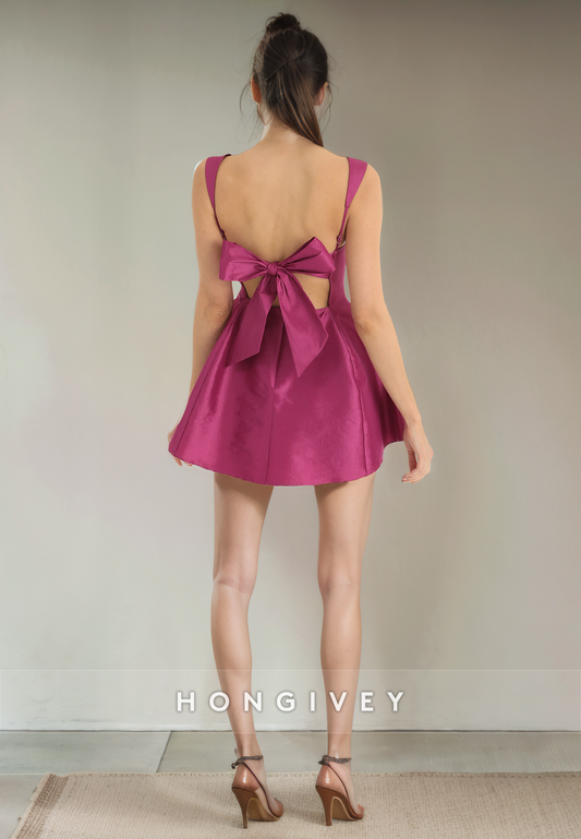 Satin A-Line Sweetheart Bowknot Spaghetti Straps Short Homecoming Dress