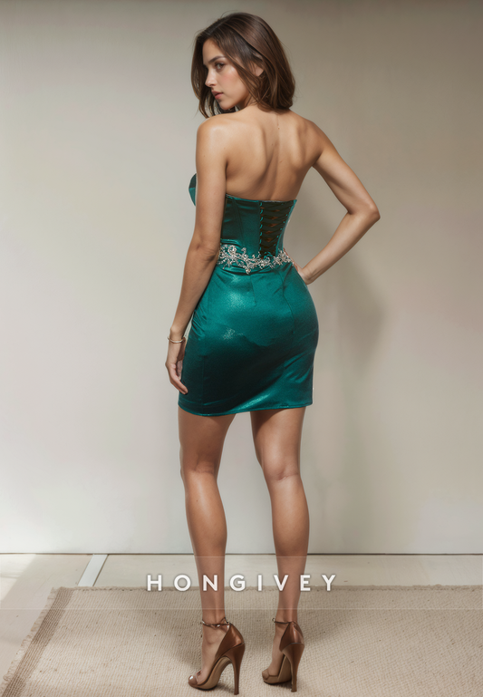 Sweetheart Strapless Beaded Empire Fitted Short Party Homecoming Dress