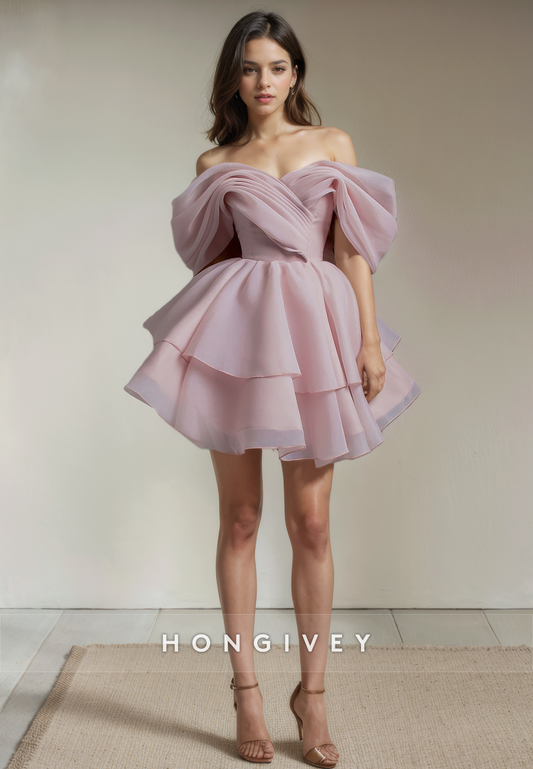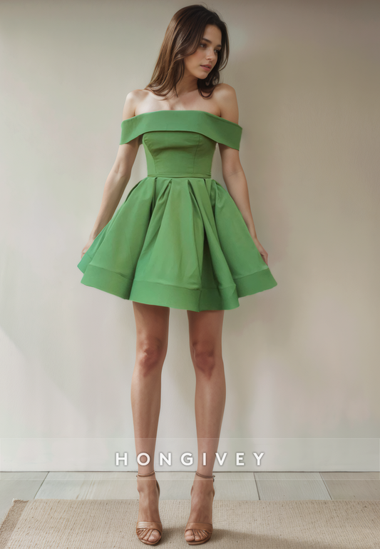 Simple Fitted Off-Shoulder Pleats Short Party Homecoming Dress