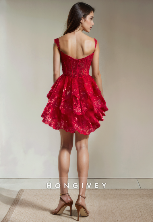 Sexy Fitted Sweetheart Sleeveless Lace Applique Short Party Homecoming Dress