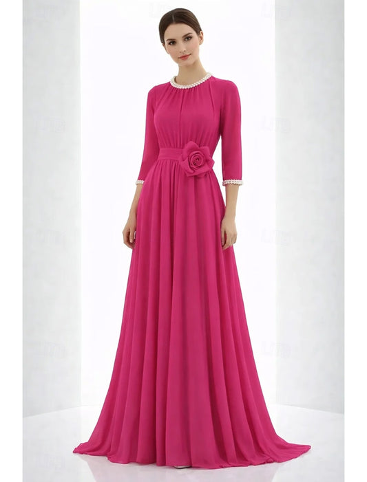 Flowers O-Neck 3/4 Sleeve A-Line Floor-Length Evening Dress
