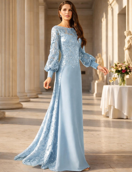 Long Sleeve Bow A-Line Floor-Length Formal Evening Dress
