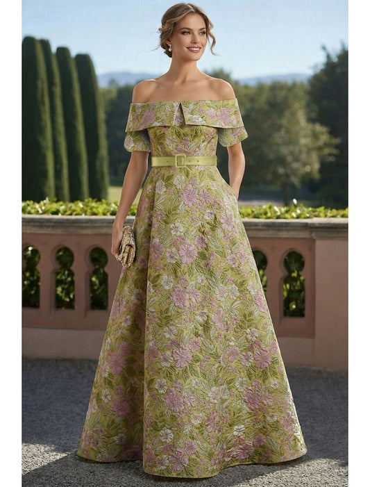 Off the Shoulder Flowers Floral Print A-Line Women Evening Dress