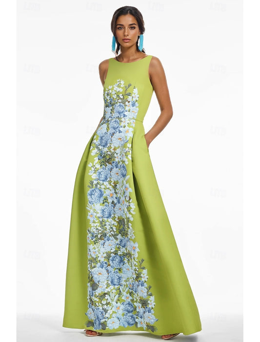 Sleevekess Floral Print A-Line Floor-Length Evening Dress