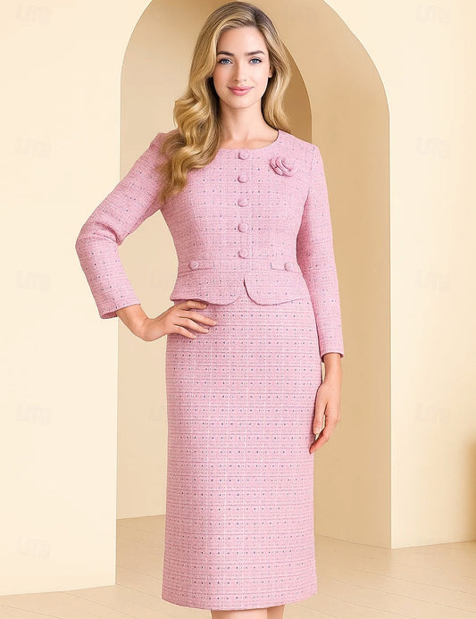 Pink Long Sleeve Flowers Mermaid Knee-Length Formal Evening Dress