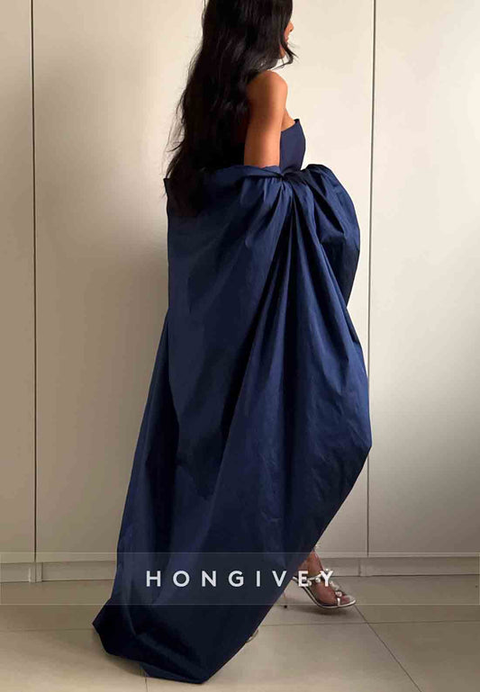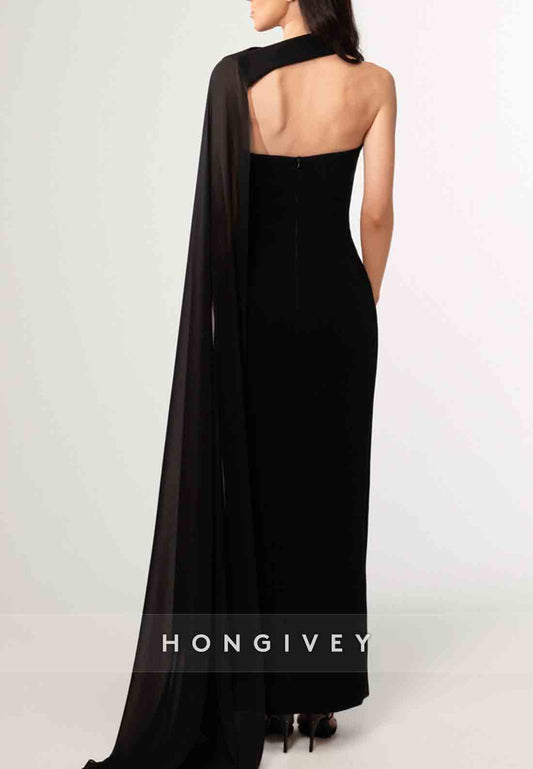 Strapless Ankle-Length Pleated Column Cloak Evening Gowns