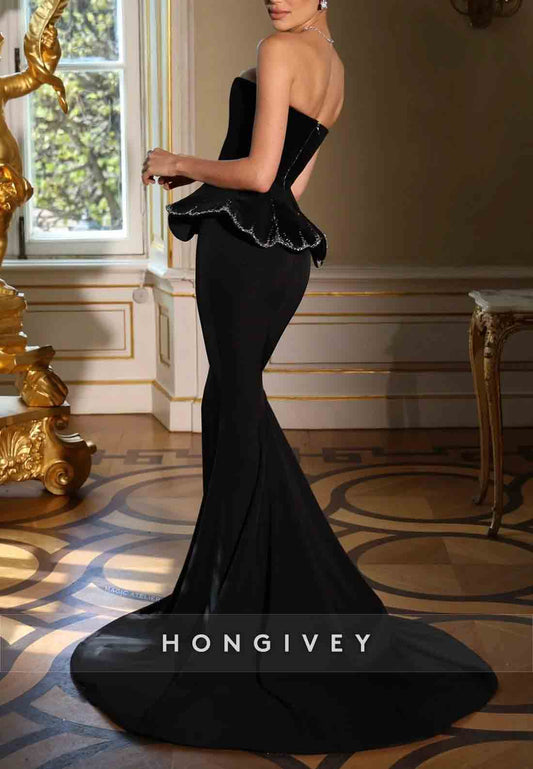 Elegant Strapless Low Back Side Slit Mermaid Floor-Length Evening Gowns