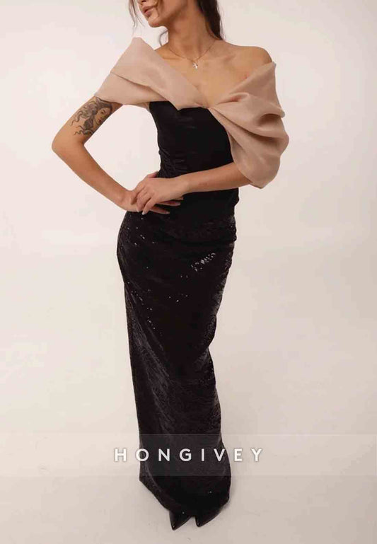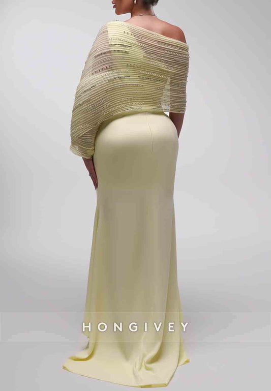 Side Slit Off the Shoulder Floor-Length Side Draping Shawl Evening Gown