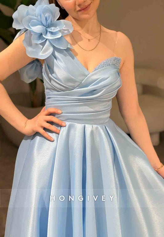 A-line Shoulder Flower One Shoulder Empire Crisscross Back Evening Gowns
