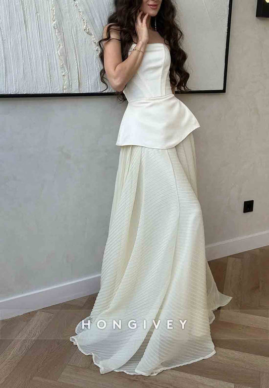 Strapless A-Line Floor-Length Evening Gowns with Beaded Corset and Ruffles