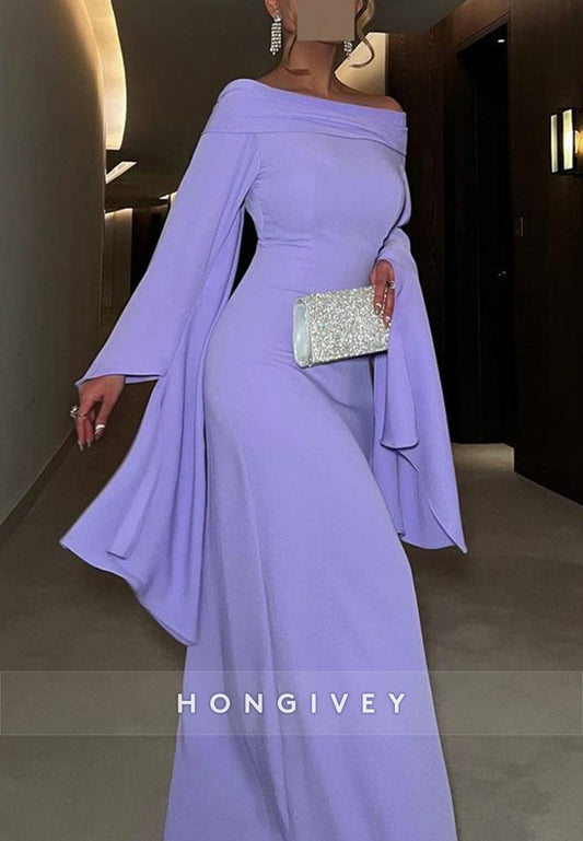 Column Floor-Length Off the Shoulder Long Sleeves Formal Evening Dresses