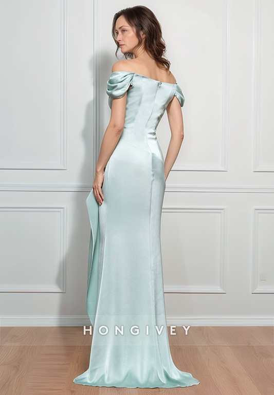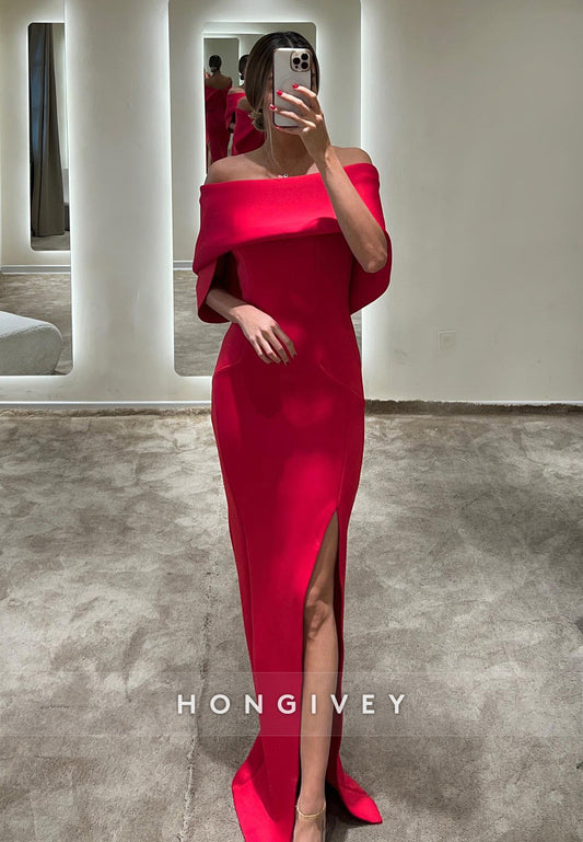 L2967 - Casual Satin Off-Shoulder Sheath With Side Slit Party Prom Evening Dress