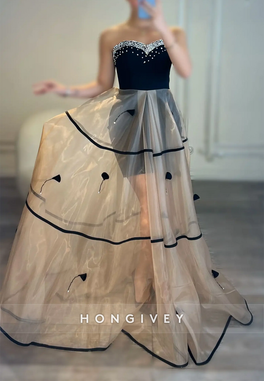Sexy Sweetheart Black A-Line with Slit Evening Dress Formal Party Gown