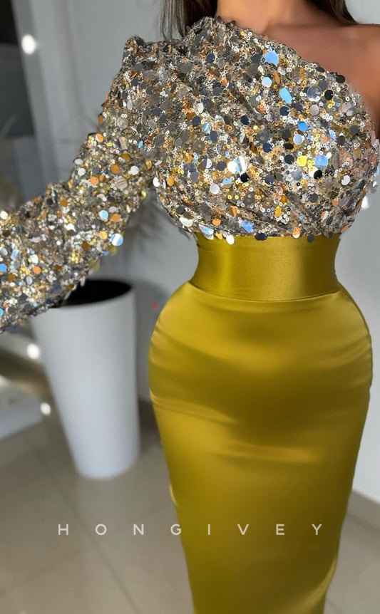 Long Sleeve One Shoulder Sexy Mermaid Long Prom Dresses