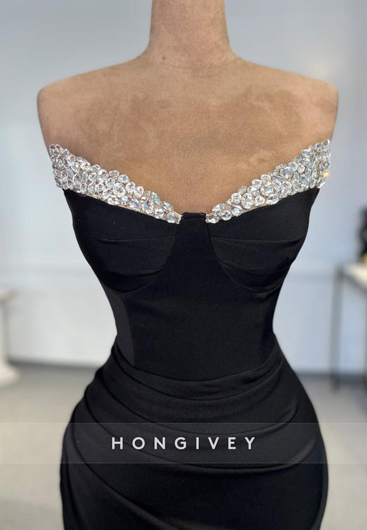 Strapless V Neck Beads Mermaid Long Prom Formal Dress