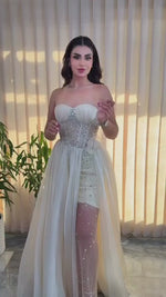 Radiate timeless beauty in this enchanting A-line wedding dress, designed for the bride who appreciates refined elegance. The sweetheart neckline creates a romantic focal point, while the flowing tulle skirt offers graceful movement and dimension. A strategic side slit adds contemporary sophistication and ease of movement without compromising modesty. Delicate rhinestone embellishments catch the light beautifully, adding subtle sparkle and luxury throughout. Floor-length construction provides classic bridal grandeur. A versatile masterpiece that balances romantic tradition with modern sensibility.